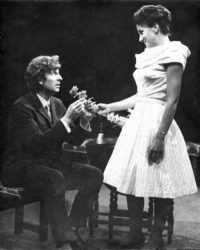 It was through taking part in the medical corps’ amateur dramatics at Christmas that Tom discovered a tiny talent to make people laugh, and after demob a librarian helped him apply to drama schools. The first one he visited, Rose Bruford College of Speech and Drama in Sidcup, impressed him by its idyllic country house atmosphere, so he looked no further. He embarked on the college’s traditional courses of breathing, movement and group exercises, but they didn’t suit his individual talent so eventually he dropped out. However, two encounters at Rose Bruford had fundamental effects on the rest of his life. The first was meeting Laurie Taylor (later a Professor of Sociology at York and a regular presenter on BBC Radio 4), and the second was meeting and marrying a fellow student.