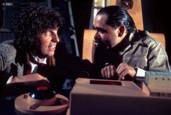 Tom as the Doctor with Henry Woolf in The Sun Makers. Picture © BBC