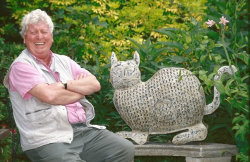 Tom and an old tin cat in his French garden! Picture copyright Freia Turland, Dig Pictures 2006